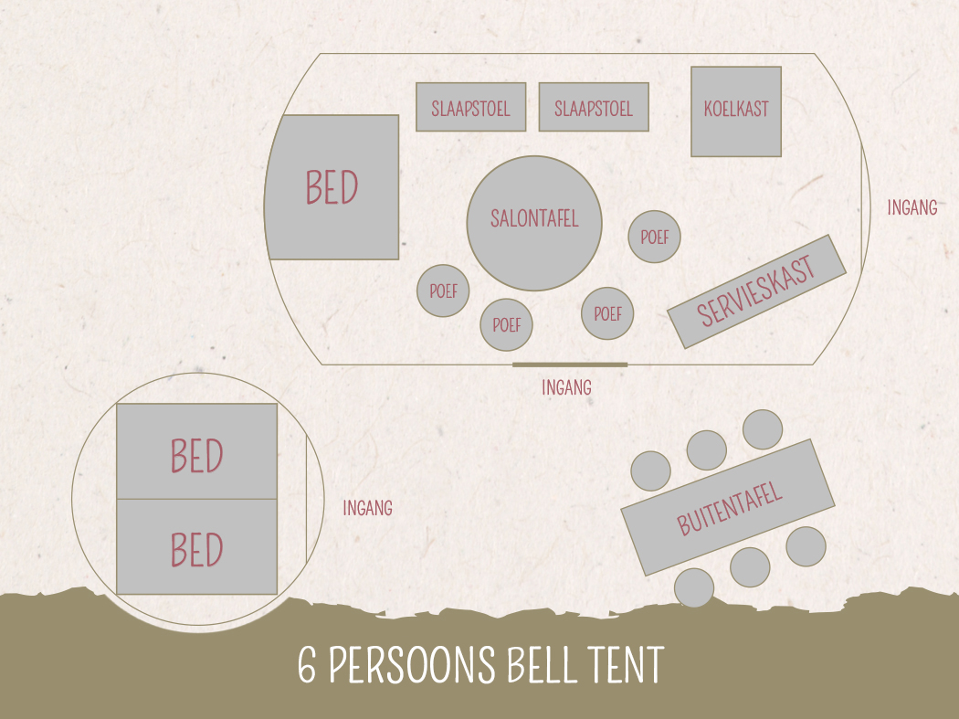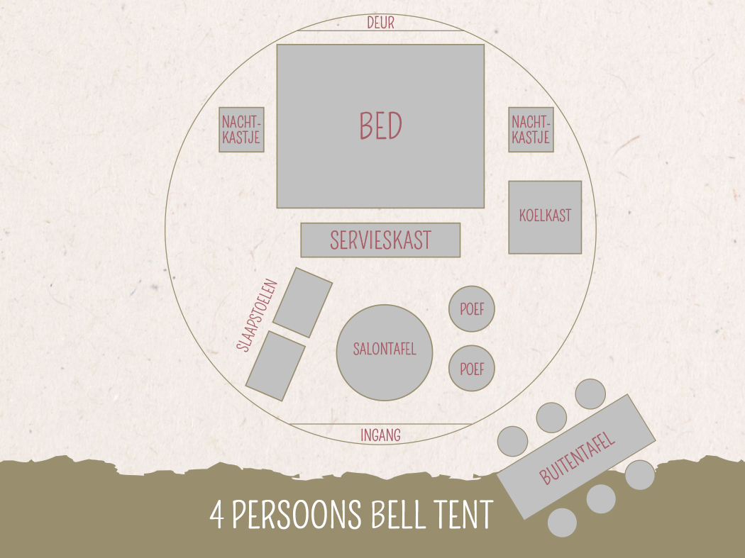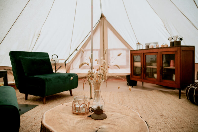 Onze belltenten zijn sfeervol ingericht en van alle gemakken voorzien. Ontdek hieronder wat er allemaal in de tenten aanwezig is.