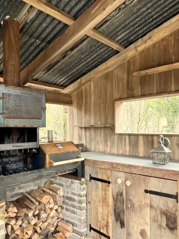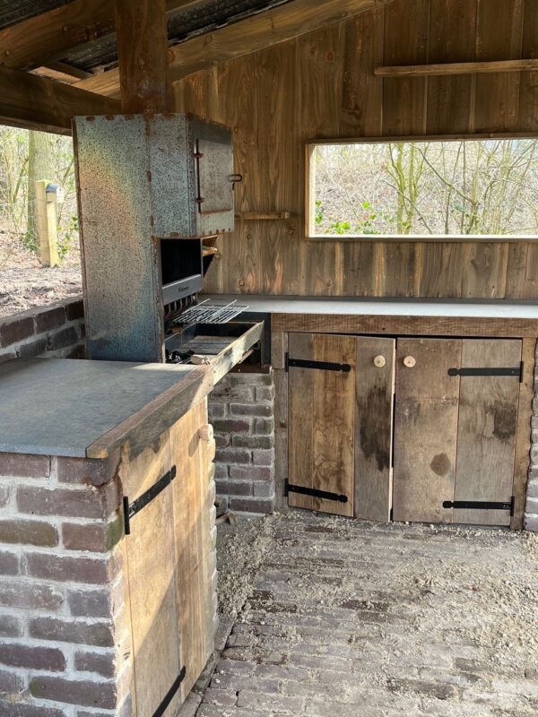 De badkamer met douche en wastafel en het toilet zijn apart en er is bovendien een extra tweede toilet. Buiten wordt het pas echt bijzonder. Bij Joop Thuis heeft een unieke buitenkeuken met zitkuil, dé plek voor lange zomeravonden, samen koken, een vuurtje stoken en genieten van het buitenleven.