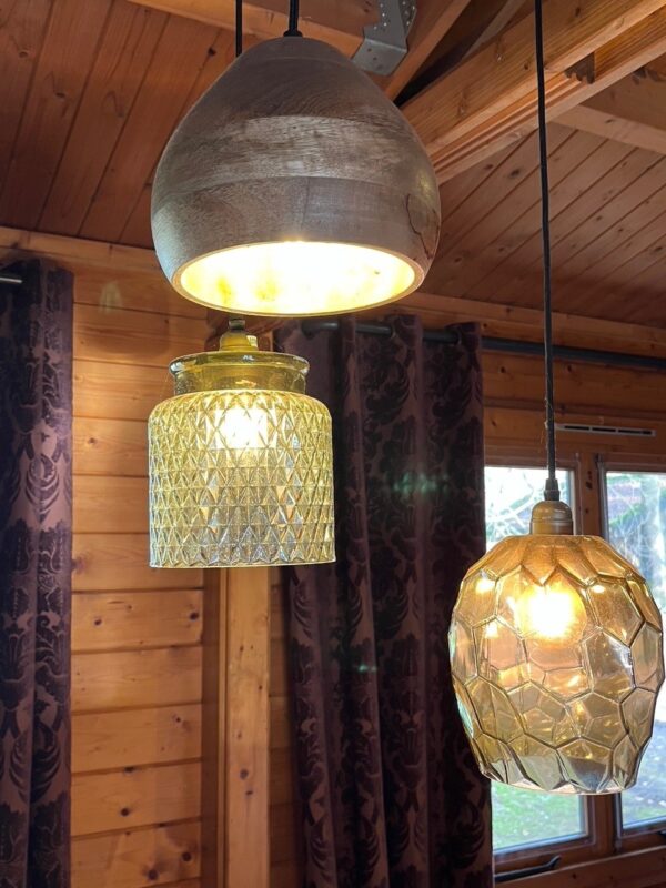 De blokhut is uitgerust met alle gemakken: een badkamertje met douche en een apart toilet, een open keuken die stijlvol is afgescheiden door een klein barretje, en een royale zithoek met houtkachel voor knusse avonden. De eethoek biedt ruimte om samen te genieten van heerlijke maaltijden. Er zijn drie slaapkamers: twee met een tweepersoonsbed en één kinderkamer met een stapelbed.
